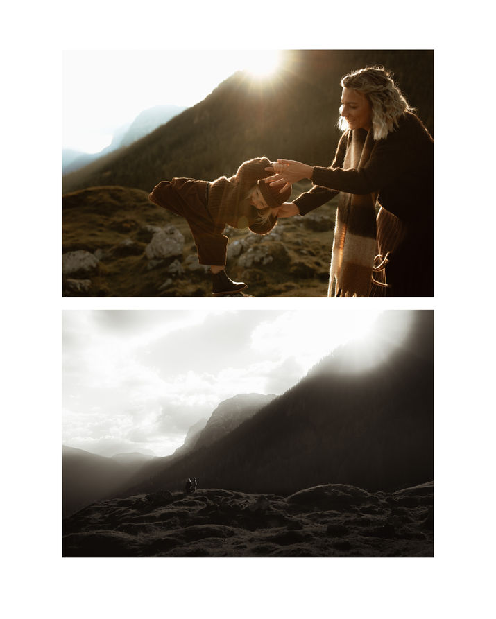 Bei diesem Familienfotoshooting in den Chiemgauer Bergen haben wir Drachen steigen lassen, sind auf Felsen geklettert, der Papa hat seine Sohn durch die Luft gewirbelt und natürlich wurde viel gekuschelt.