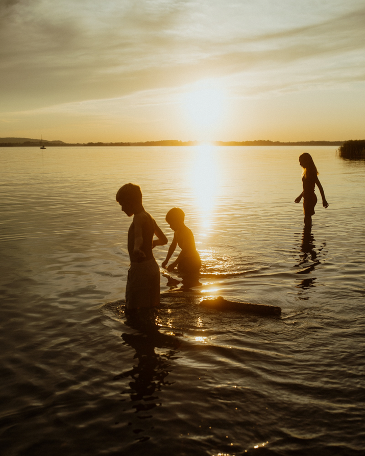 Ein Familienabenteuer am und im Wasser - eine Geschichte eines warmen Sommerabends, goldenem Licht, ganz viel Liebe, Freude und vielleicht auch die eines Holzdrachen im Wasser, auf dessen Rücken Kinder reiten oder doch die eines Wikkingerschiffs, das in den Träumen der Mama vorkommt?